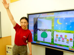 動詞にingを付けて今現在やっていることを話す練習をしています。