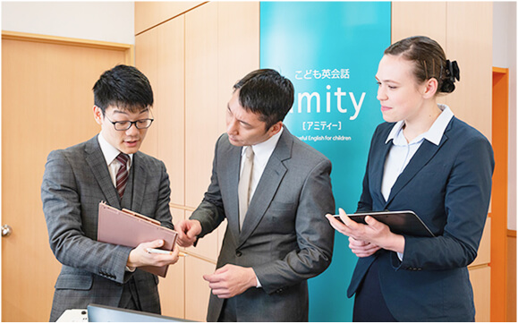 アミティーは教育ノウハウと講師の成長を支えるサポート体制を備え、人材を尊重しながら質の高い英語教育を共に目指しています。
