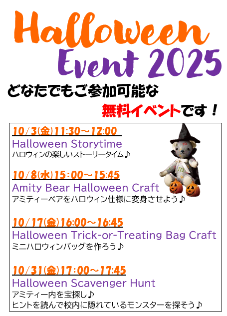 10月は体験レッスンとハロウィンイベントでアミティーを体感!