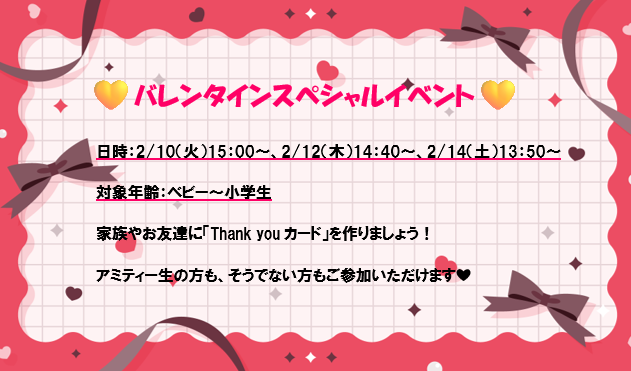 在校生以外の方もご参加いただけるので一緒に英語でバレンタインカードをつくりましょう🎶