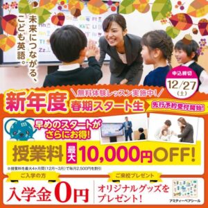 ●12月~3月のお月謝が各月2,500円割引(最大10,000円割引!)