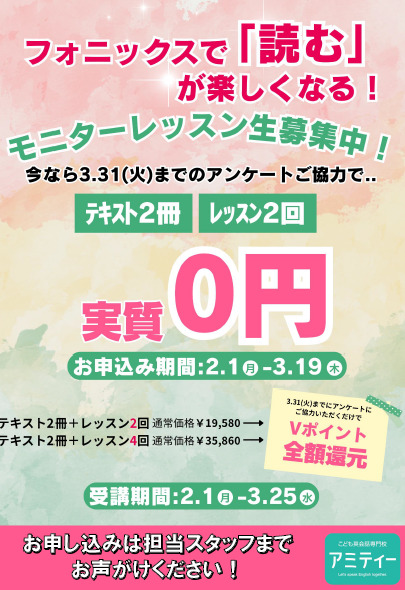 🌸在校生限定でフォニックスモニターレッスンをご受講頂けます!🌸