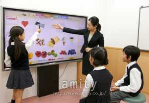 アミティーでは2014年からタッチパネルを使用した「i Lesson(アイレッスン)」を導入しました。従来のレッスンでは単語や文章の意味をカードで学習していたところを、画面の中にカードが入っているだけではなく、実際にアニメーションとして動くようになりました。英語を始めたばかりのお子様にも単語や文章の意味が理解しやすくなり、英語力が急成長しています!