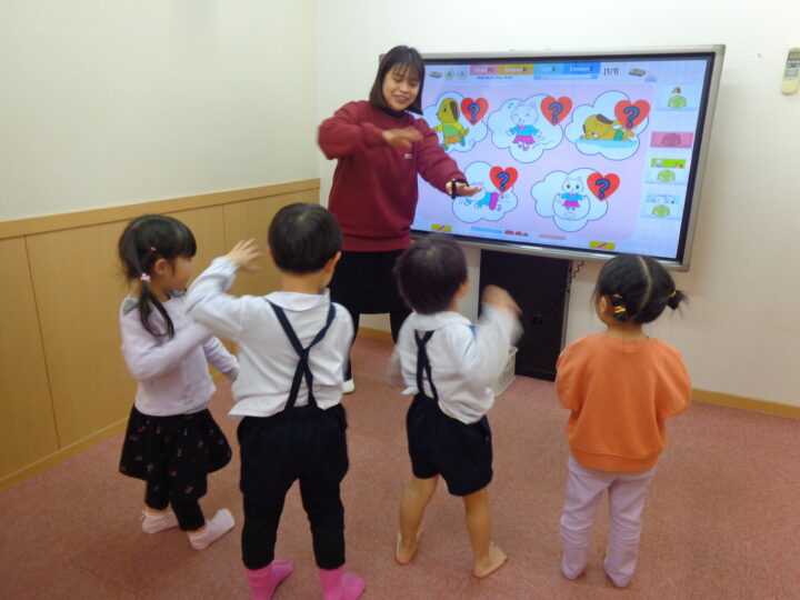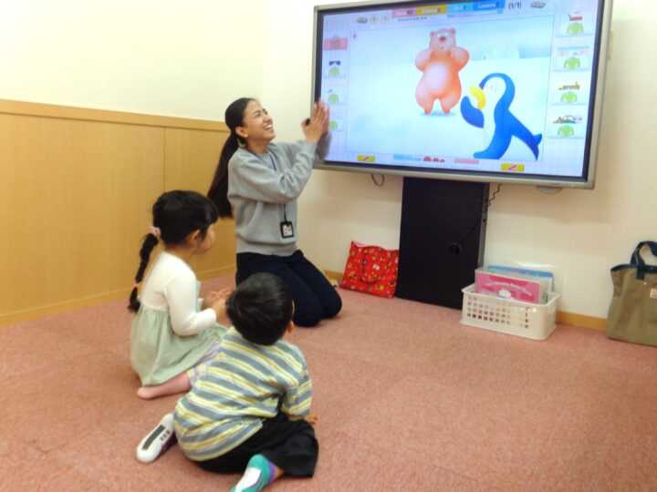 【iレッスン英会話】ベビーから中3までの会話レッスンでは、最新の電子ボードを使ってレッスンを進めます♪楽しい仕掛けがたくさんで大好評です!