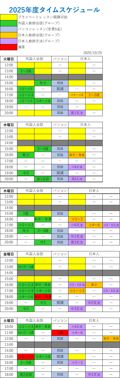<日程>会話レッスン・インタラクティブレッスンのみ