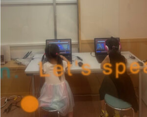 一人一台のコンピューターを使用した、「インタラクティブレッスン」では、リスニング力・語彙力・集中力の向上が期待できます。流れる英語はすべてネイティブの英語です!年中さんから受講できて、中高生からも一番人気のクラスです。