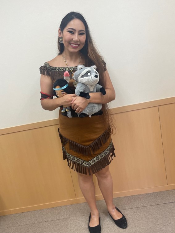 昨日のカテリーナ先生はポカホンタスのコスチュームでした!
