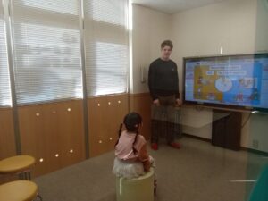インタラクティブコースは年中さんからできるパソコンを使ったレッスンです。アメリカのお子さんが算数、理科、社会科等教科の学習を楽しくできるCDソフトを使い、教師が英語でフォローしながら進めていきます。ゲーム感覚で楽しくリスニング力、ボキャブラリー、表現力を向上できるアミティー特有のクラスです。大人の方でも楽しめるレッスンですので是非親子でチャレンジしてみて下さい!!