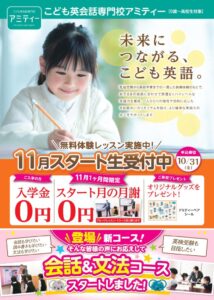 今月は入会金0円に加えて11月お月謝0円キャンペーンを実施中です。