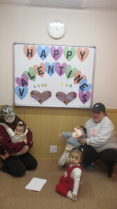 話す:リズムに合わせて発話を促すチャント、質問や答えの発話を促すイラスト