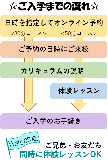 無料体験レッスンお申込みからフォームにて、入力してください。体験レッスンの日程をメールにて調整させていただきます。