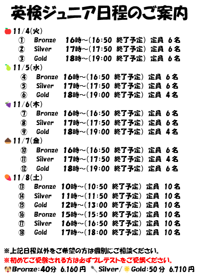 🌟英検ジュニアの日程🌟