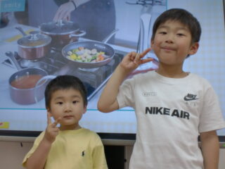 お子さんたちは先生の発話を聞いたり、