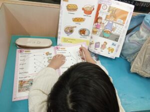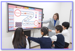 ①英語読み書き(小1、小2)、英文法(小3以上)を日本人教師と学習+英会話レッスン(外国人教師教師/日本人教師担当選べます)