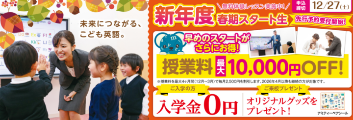 アミティーさいたま与野校では、来年4月スタートの先行受付と同時に、12月スタート生も受付中🎄