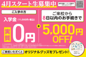 本日1/10(土)体験レッスン当日予約可能です!☎03-6386-7117まで!