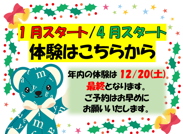 年内の体験レッスンご予約は12/20(土)までです🎄