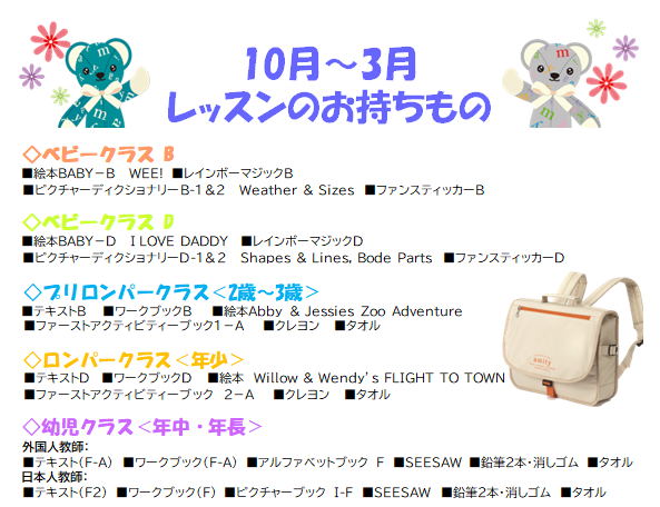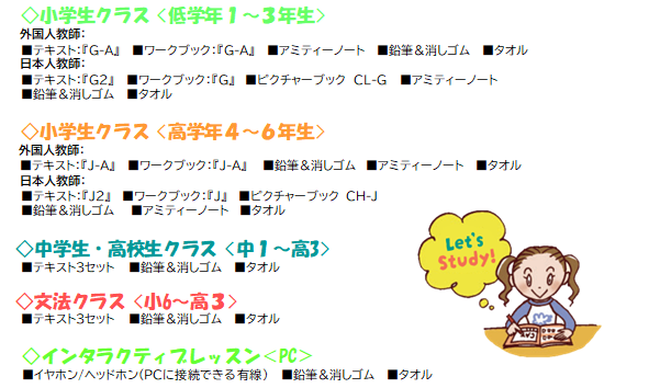 こども英会話アミティー学習費用のご案内は