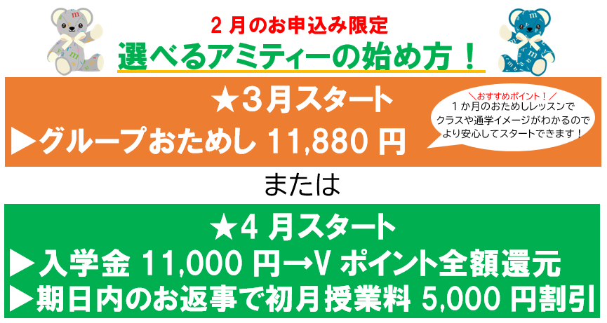 2月でも3月でも、新年度4月のクラスのご予約が可能です。