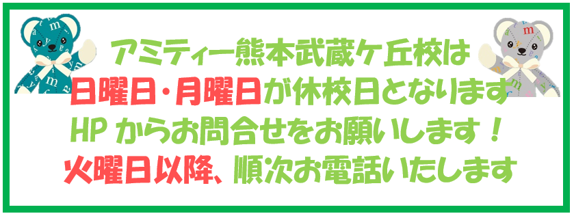 こんにちは、アミティー熊本武蔵ヶ丘校です