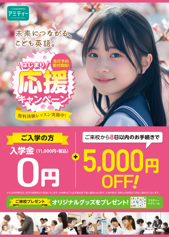 ❤問合せから8日以内の申し込みで4月月謝5,000円OFF!!