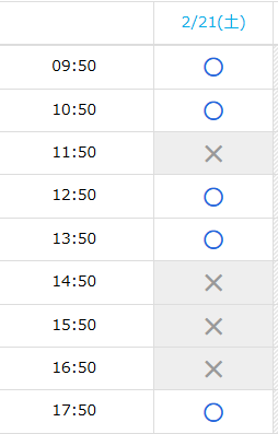 土曜日 10時~、11時~、12時~、13時~