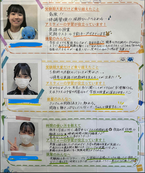 中学受験、高校受験、大学受験それぞれを経験したアミティーの先輩たちにインタビューをしました。