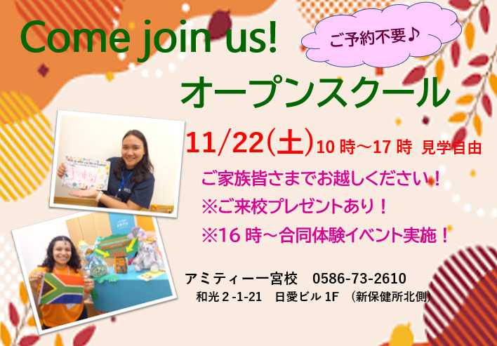 22日(土)はオープンスクール開催!ぜひご家族皆さまで見学にお立ち寄りください!!!