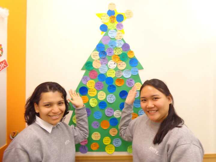 ツリーのオーナメントに生徒さんにお願いを書いてもらっています☆