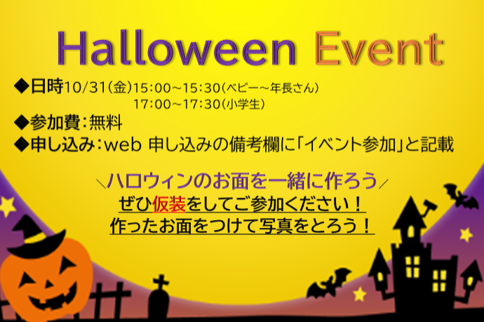 レッスン受講のチャンスを逃さないよう、お早めに申し込みください🎃✨