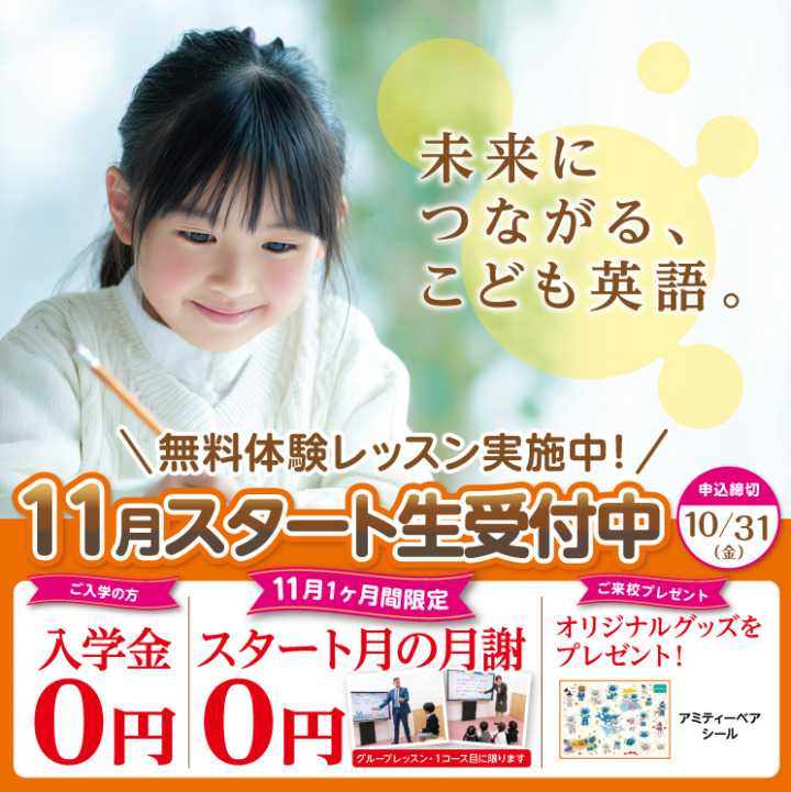 ピカピカの満6か月さんもスタートしています。お子様の「はじめてのえいご」アミティーでスタートしましょう。