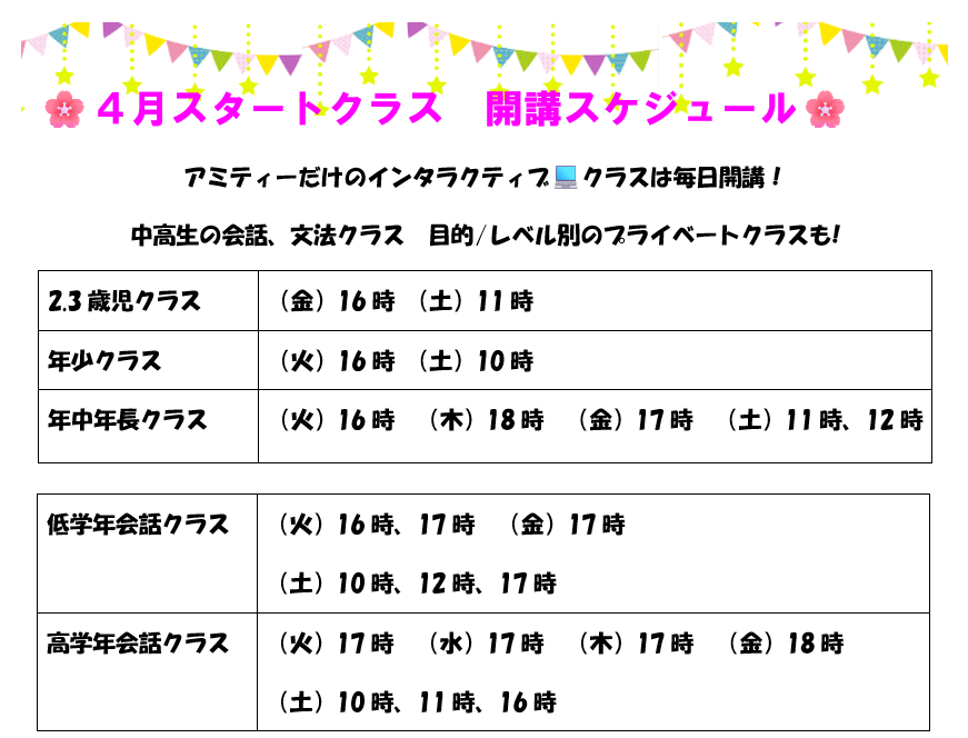 アミティーでは、一人ひとりのお子さまの成長過程や学習レベルに合わせたレッスンをおこないます。