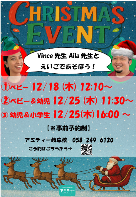 だれでも参加OK!!ヴィンス先生、アイラ先生とクリスマスにたのしく英会話体験しよう♪